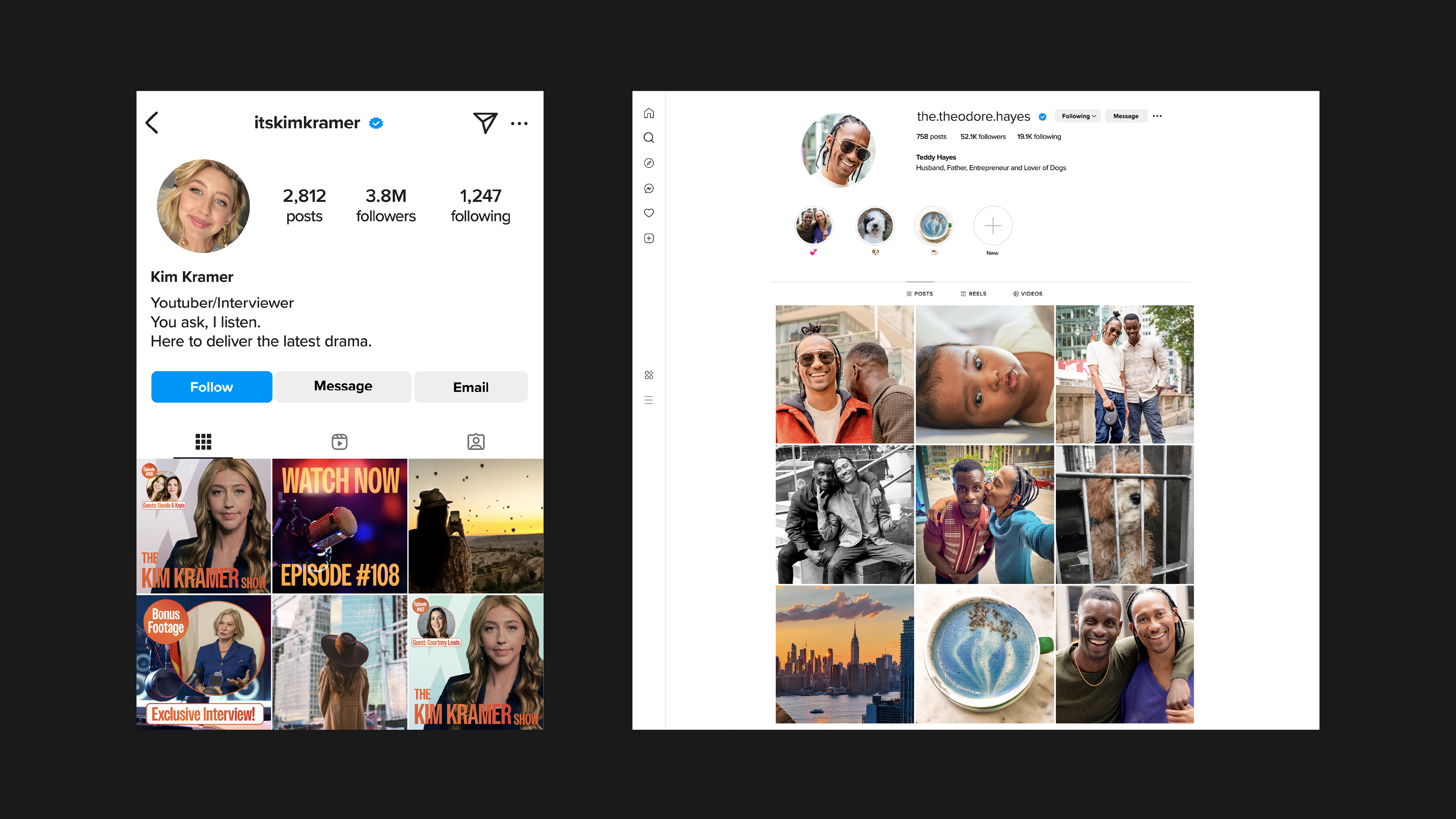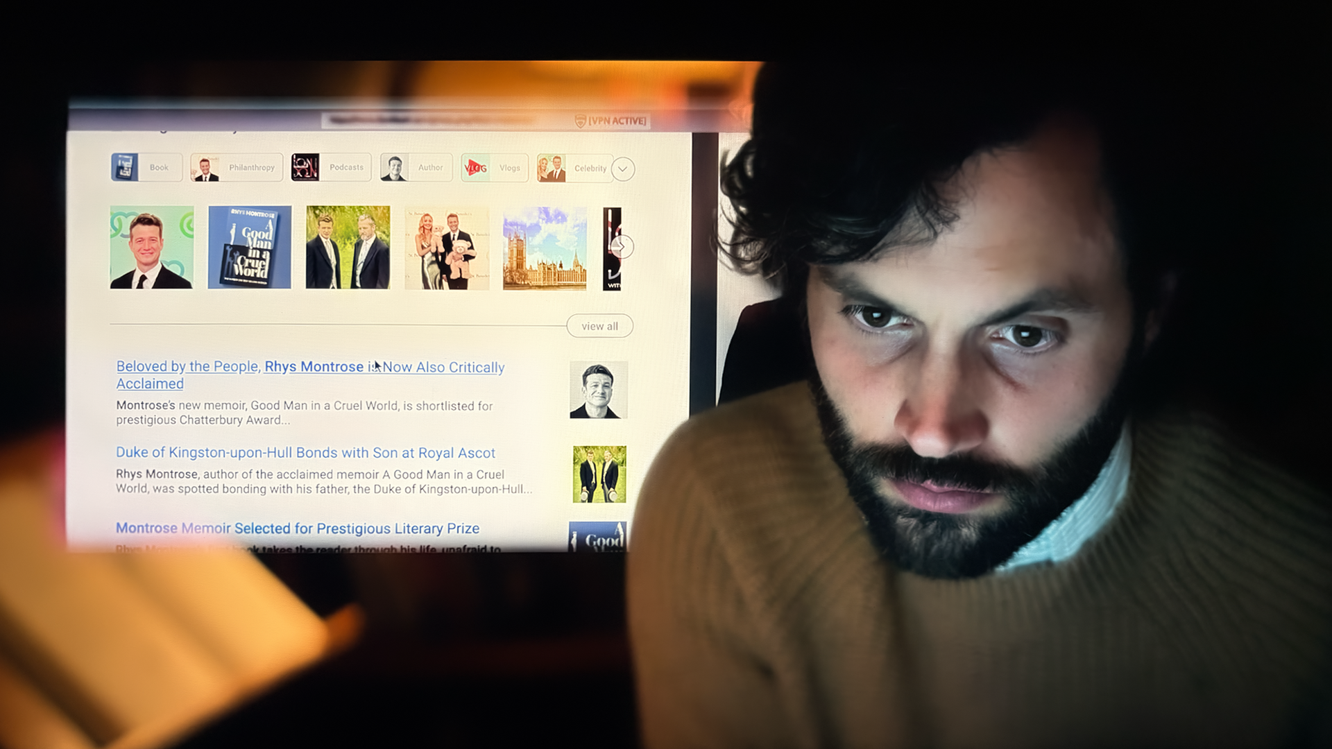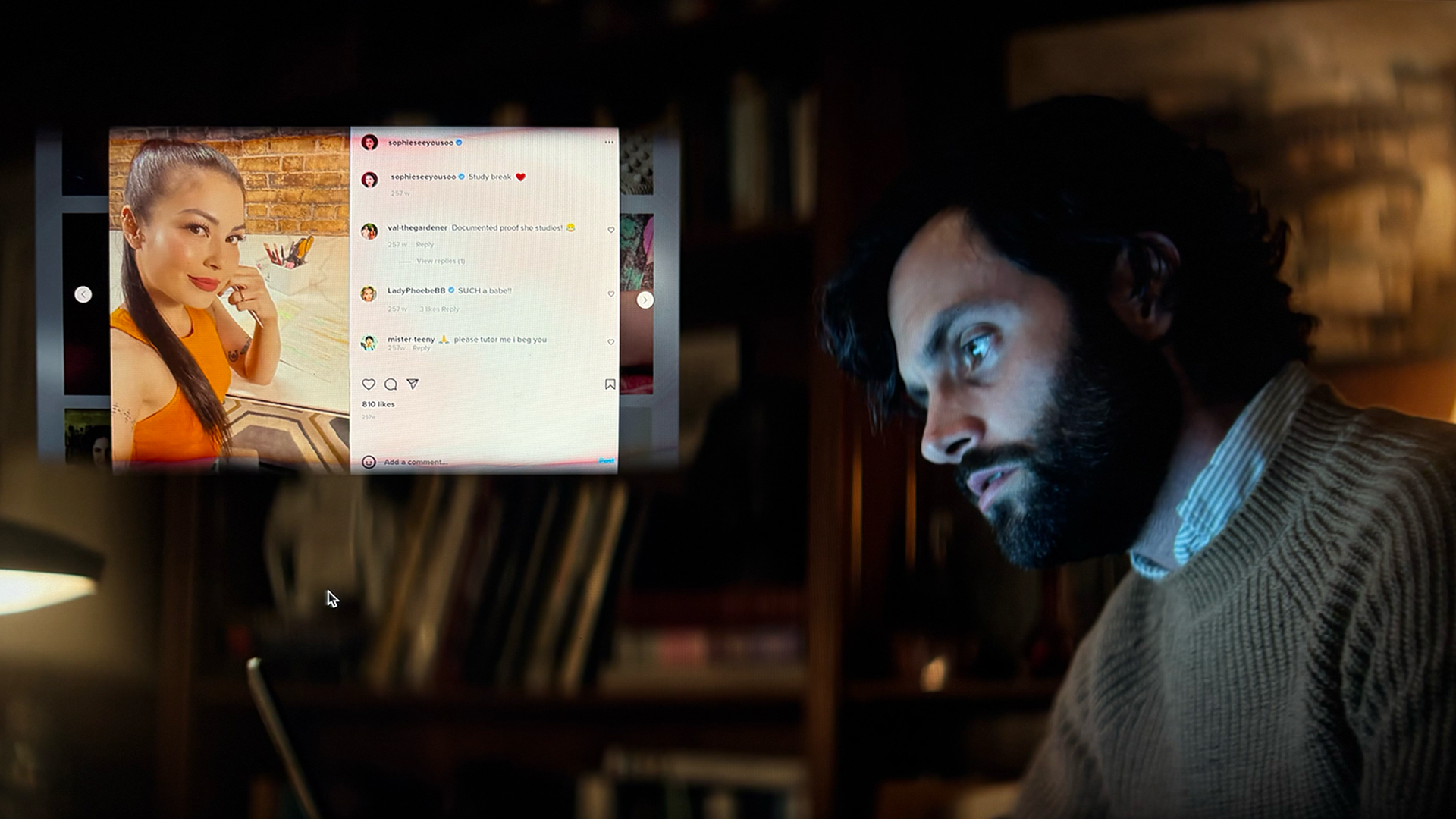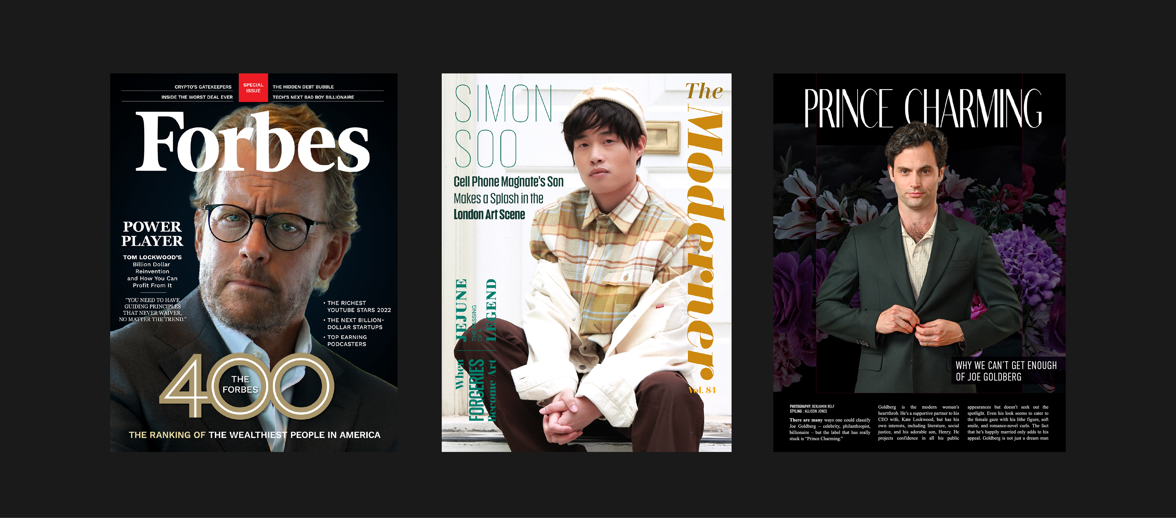I worked with post production and visual fx to create joe's "deep dives" into the online lives of strangers by creating websites, social media copy-cat sites, magazine covers, tabloid articles and apps. in montage, these flashes of backstory need to read quickly and feel realistic. It was important to consider UX flow and camera movement, while also giving attention to details like interface design, logos and ads. In addition, many beats required photo comps and manipulation to tell the story. *using ai is/was not permitted by the studio.